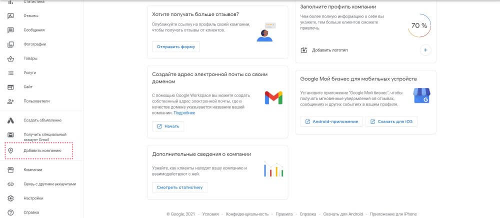 Ниже представлена инструкция о том, как добавить и подтвердить карточки компании в Google.