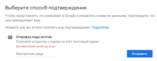 В аккаунте компаний, для которых Google предоставляет такой возможность, есть кнопка «Подтвердить по телефону». На указанный номер поступает звонок и автоответчик диктует вам код. Если у вас многоканальный номер телефона, звонок может не пройти. В этом случае нужно сделать запрос на получение кода с помощью письма.
