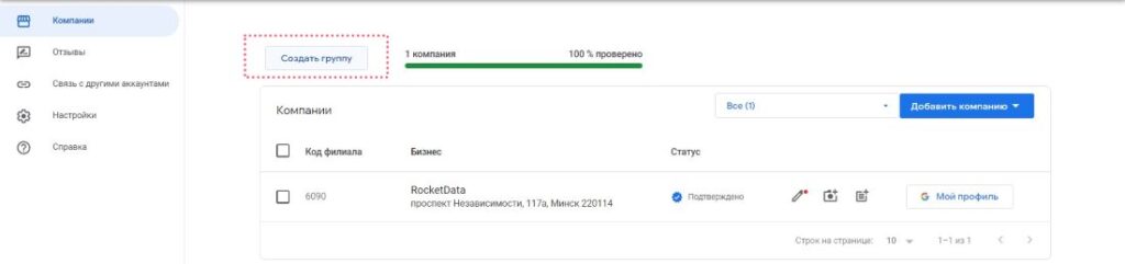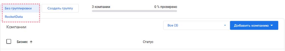 Шаг 1. Войдите в раздел «Компании» и выберите «Создать группу».