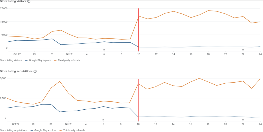 З 10 листопада цього року, як анонсував Google Play, трафік з Google Ads перестав бути включеним в Search чи Explore канали консолі.